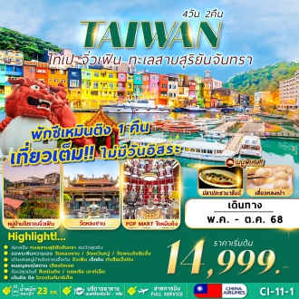ทัวร์ไต้หวัน พักซีเหมินติง1คืน (พ.ค.-ต.ค.68)