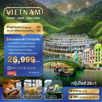 ทัวร์เวียดนามเหนือ บินเหมาลำ ฉลองเทศกาลปีใหม่2569 เที่ยวฮานอย ซาปา นิงห์บิงห์ (พักหรู 5 ดาว) 4 วัน 3 คืน