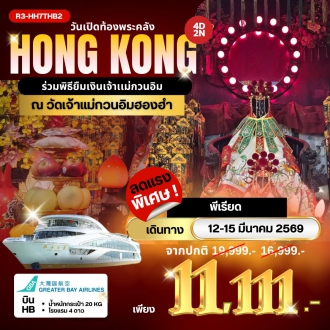 ทัวร์ฮ่องกง ร่วมพิธียืมเงินเจ้าแม่กวนอิม 12-15 มี.ค.69