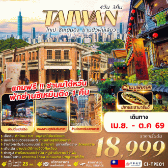 ทัวร์ไต้หวัน ไทเป ซีเหมินติง ย่านปัวผีเหลียว 4D3N เม.ย.-ต.ค.69 (CI)