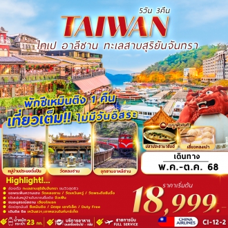 ทัวร์ไต้หวัน ไทเป อาหลีซาน 5วัน3คืน (พ.ค.-ต.ค.68)