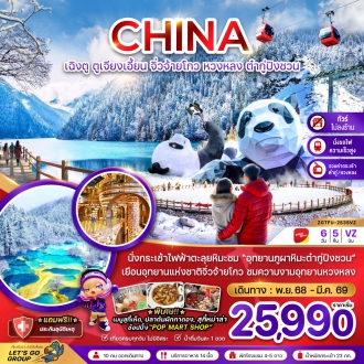 ทัวร์เฉิงตู จิ่วจ้ายโกว หวงหลง ต๋ากู่ปิงชวน (ไม่ลงร้าน-นั่งรถไฟ)